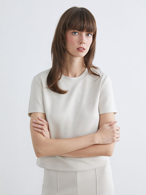 Bisiklet Yaka Nak??l? Soft Touch Kad?n Ti??rt