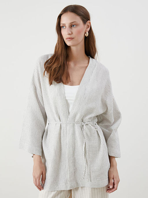 ?al Yaka ?izgili M?slin Kad?n Kimono