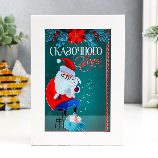 Интерьерная копилка для купюр и монет «Дед Мороз и зайка: Сказочного Года», пластик, 17×12×3.8 см