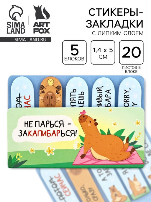 • Цена за 2 шт. Набор стикеров-закладок «Не парься-закапибарься!», 5 шт., 20 л