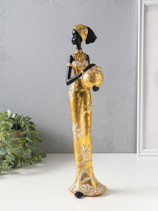 • Фигура полистоун «Африканка с кувшином, с повязкой в волосах», бело-золотой, 9×8×37.5 см