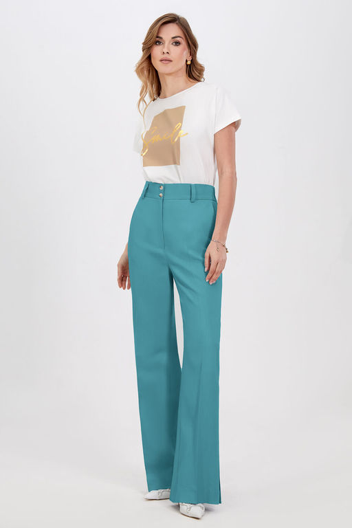 Классический шик! Модные и абсолютно удобные, широкие брюки с косыми боковыми карманами будут сопровождать вас в повседневной жизни. Модная длина создает стильные образы, подходящие как для офиса так и для повседневных мероприятий. Изделие на притачном поясе со шлёвками, собранном на эластичную тесьму по спинке и застёжкой по переду на молнию и петли-пуговицы, выполнили из приятного однотонного материала на основе льна. В пару к брюкам можно подобрать жакет из той же линейки для создания готового комплекта.­