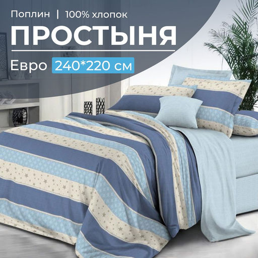 Артикул: Простыня Евро, поплин (Морской стиль (компаньон))