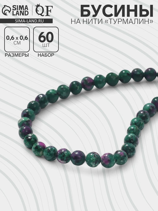 Бусины на нити шар №6 Турмалин, 60 бусин