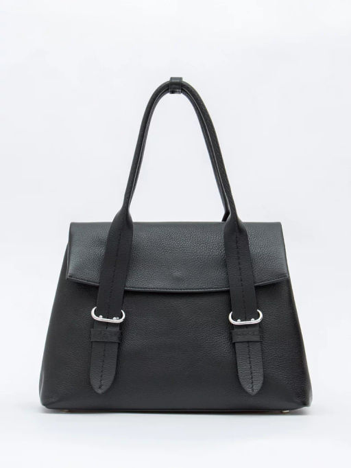 Классическая модель, выполнена из натуральной кожи. Дополнена серебристой фурнитурой. Данная модель закрывается на клапан. Каркас полужесткий. Сумка носится в руке или на плече за удлиненные встроенные ручки с фиксатором. На дне предусмотрены ножки.