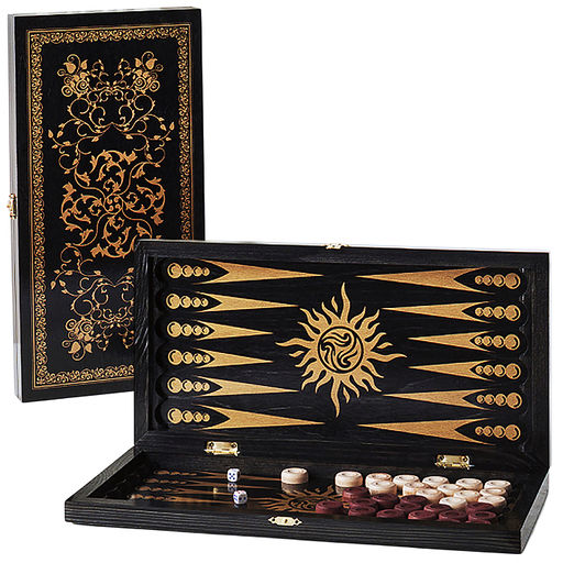 Нарды малые черные, рисунок золото "Вьюн" (400*200*40)