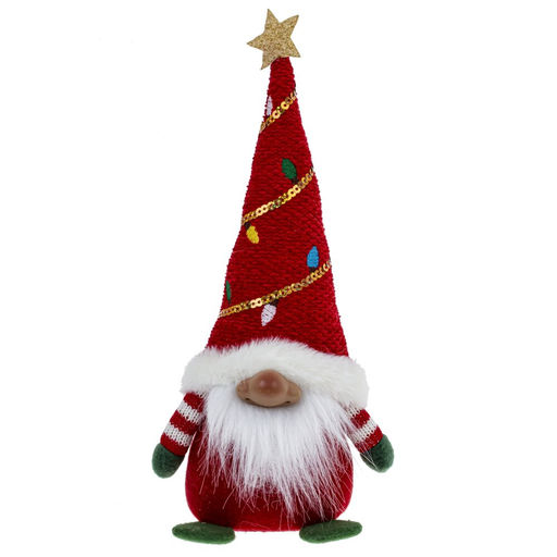 Декоративная игрушка - набивной гном яркого цвета. Представлена в двух видах цвета: один гном с красным колпаком, украшенным маленькими цветными огоньками и золотой звездой, а другой с зеленым колпаком. Оба гнома с белыми бородами и без видимых глаз. Эта игрушка станет чудесным дополнением к новогоднему декору, принося в дом атмосферу волшебства.