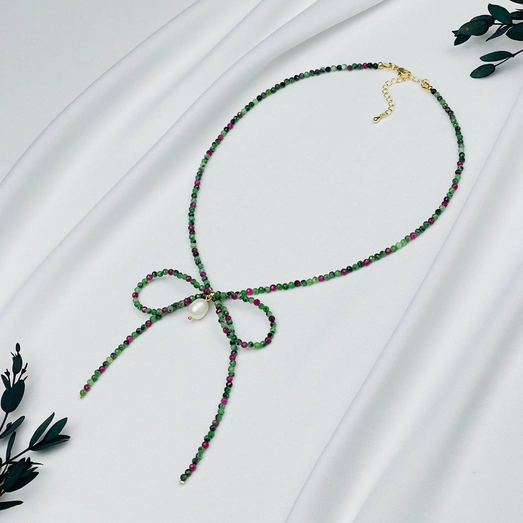 • Колье из Цоизита с Рубином и Жемчуга "Бантик" 42 см +