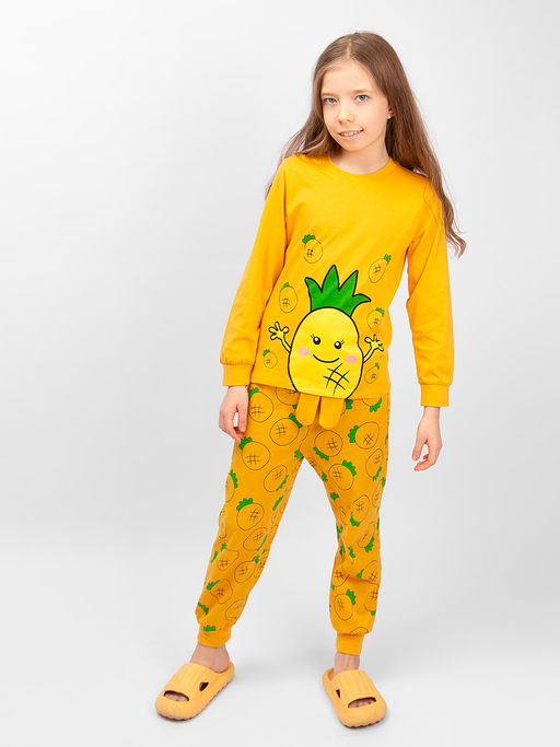 Пижама для девочки Bonito, используются ткани компаньоны оригинальных расцветок. Кофточка свободного кроя не стесняет движений. Брюки с эластичным поясом и манжетами по низу.