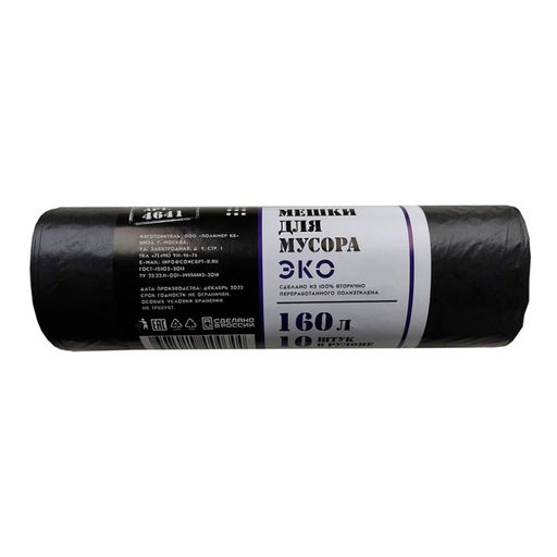 • Мешки для мусора 160л, 26мкм, 10шт., ПВД ЭКО черный