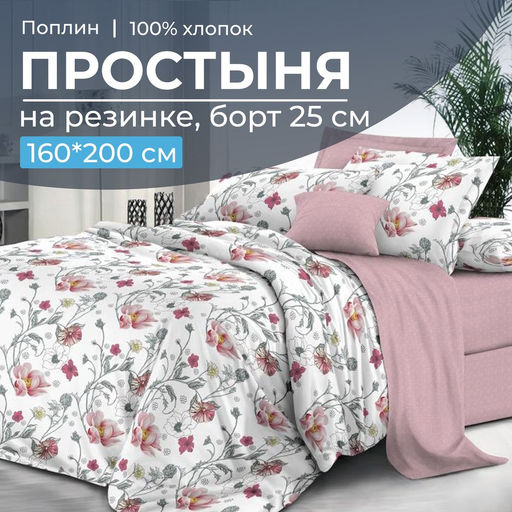 Артикул: Простыня на резинке 160*200 см, поплин, борт 25 см (Милица (компаньон))