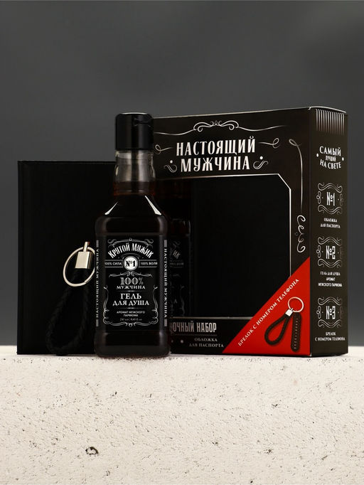 • Чистое счастье Мужской набор гель Виски, обложка для паспорта и брелок