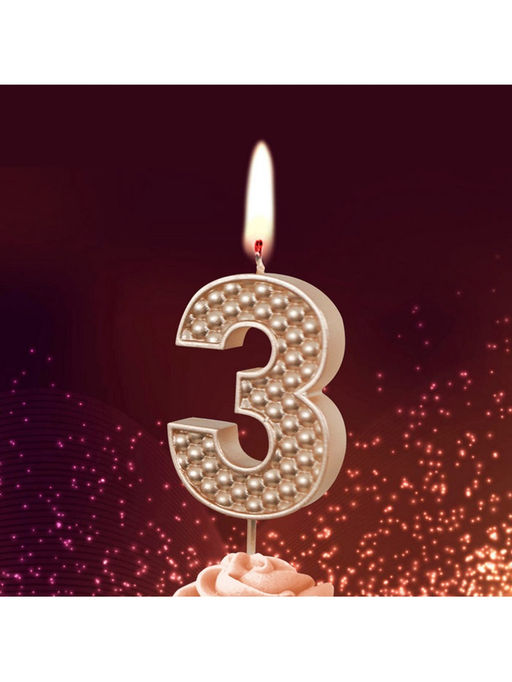 Цена за 2 шт. Свеча в торт на шпажке «Жемчужная», цифра 3, шампань