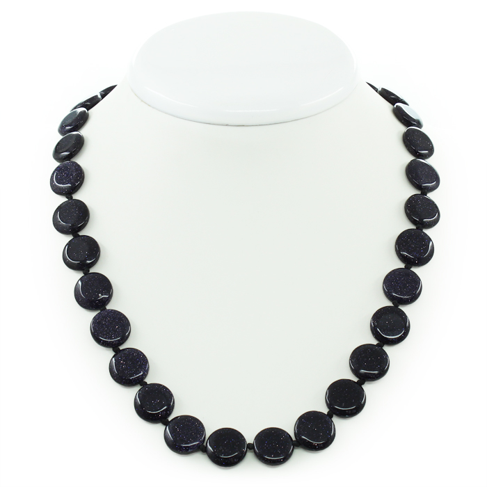 Бусы авантюрин синий "Звездное небо", плоские круглые 14 мм, короткие 50см