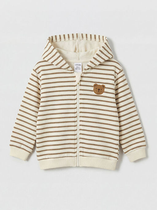 Kap??onlu ?izgili Erkek Bebek Fermuarl? Sweatshirt