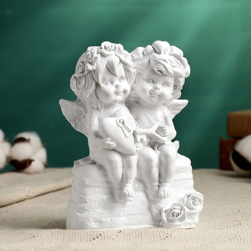 Фигурка гипс Ангелы с сердцем на замочке, белый, 15?11 см