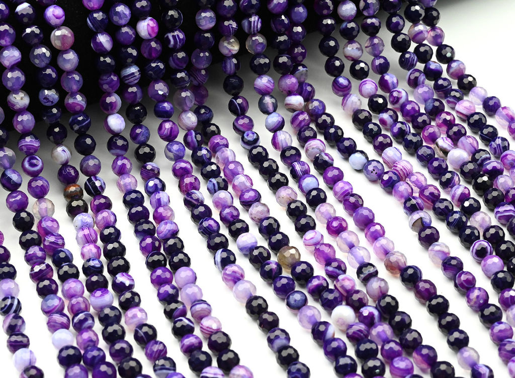 Бусины из агата тонированного шарик гр.6мм цв.фиолетовый, 37см, 63 бусины Радуга камня
