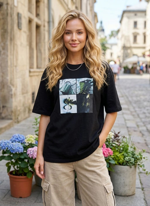 K13533 Футболка OVER SIZE (хлопок) ЧЕРНЫЙ