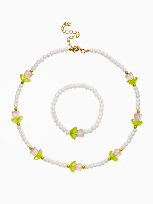 Комплект детский «Выбражулька. Тюльпаны и жемчуг», 2 предмета: бусы, браслет, бело-розовый