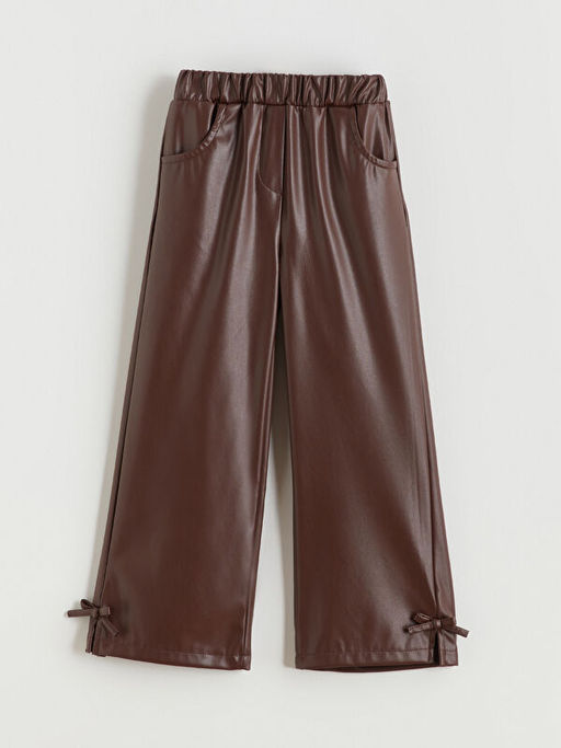 Fiyonk Detayl? Deri G?r?n?ml? K?z ?ocuk Pantolon