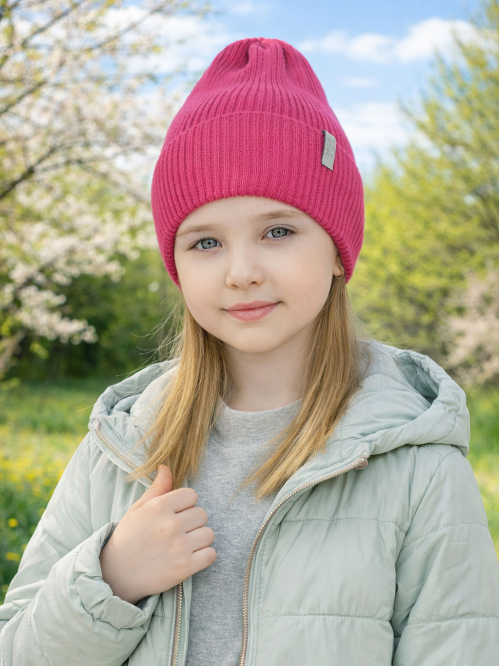 • Шапка вязаная розовая