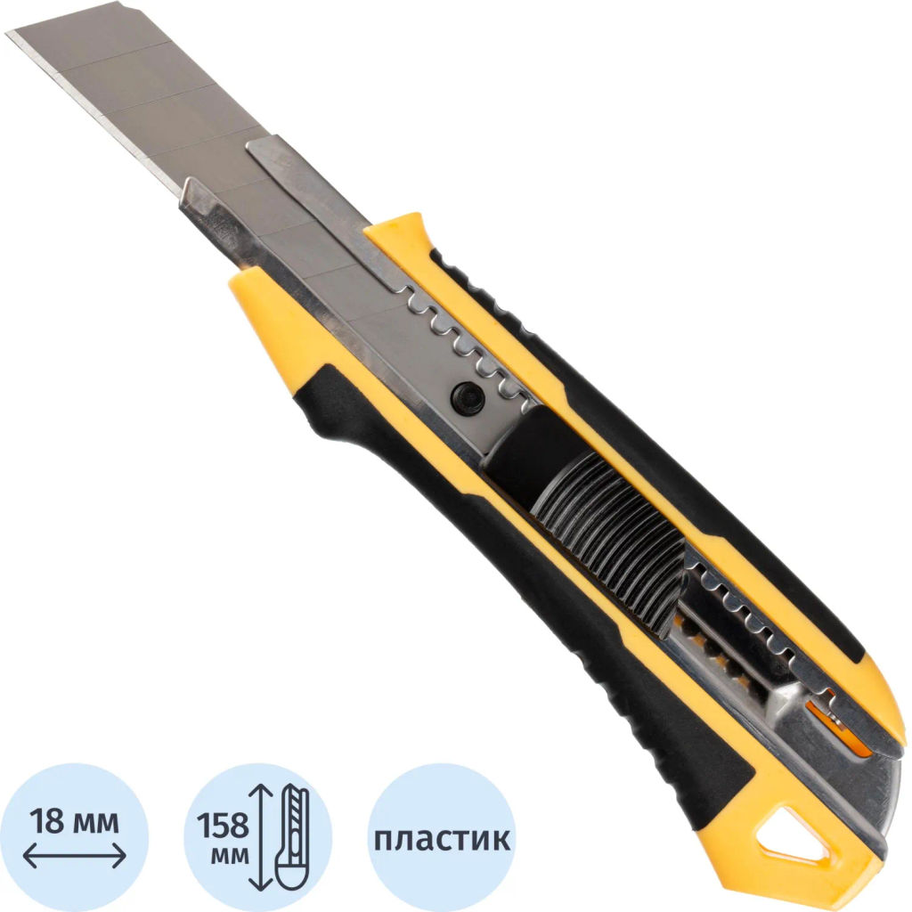 Нож универсальный Комус 18 мм пластиковый со вставками мет направл