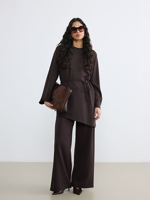 • Y?ksek Bel ?izgili Geni? Pa?a Kad?n Pantolon