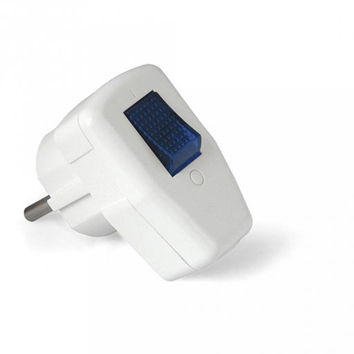 • Вилка 16А, 250В, с заземлением, еврослот, с выключателем, белый (Китай)