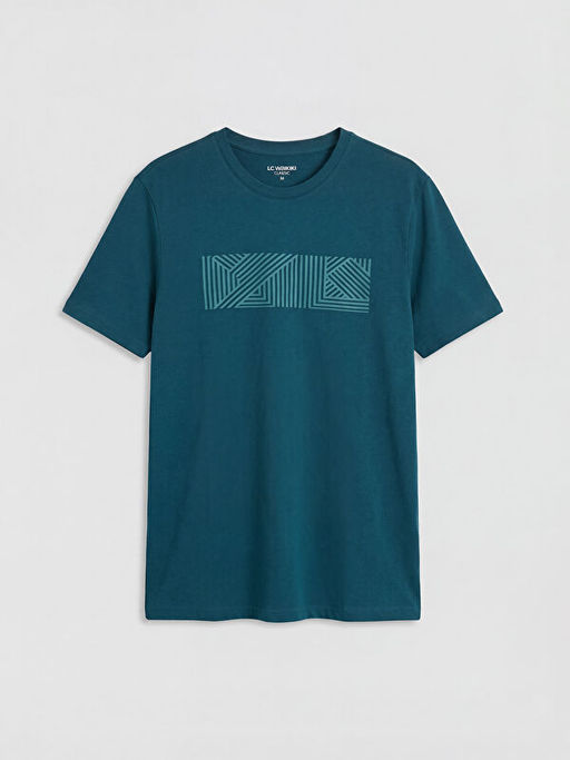 • Bisiklet Yaka Bask?l? Erkek Penye Ti??rt