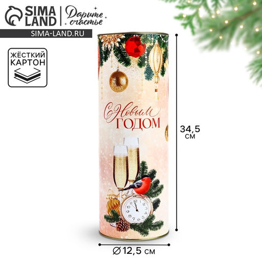 Форма: Круглая. Форма: Цилиндрическая. Плотность, г/м²: 1000. Длина, см: 9.5. Ширина, см: 9.5. Высота, см: 34. Тематика: Новогодняя. Символ года: Нет. Тематика праздника: Новый год. Вид: Коробки для бутылки. Вид: Коробки-тубусы. Размер: Большой (25-45 см). Бесплатная доставка: Да. Наша разработка: Да.
