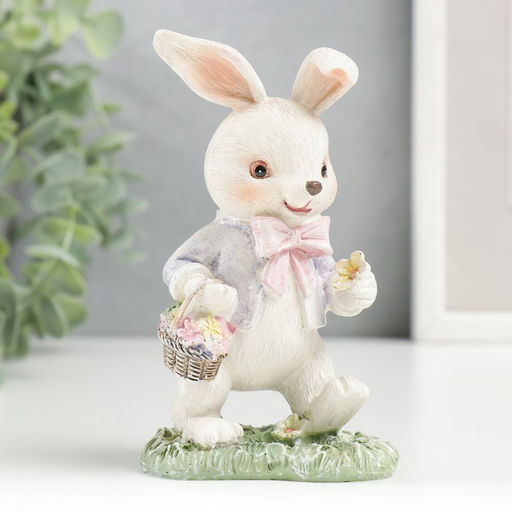 Фигурка полистоун Нарядный зайчик с корзиной цветов на полянке, 11.5?5.5?7 см