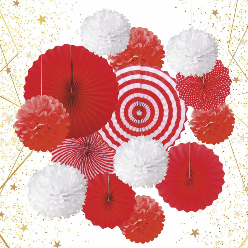 Набор вееров с помпонами "Праздничное утро!" (14 предметов), Красный/Белый