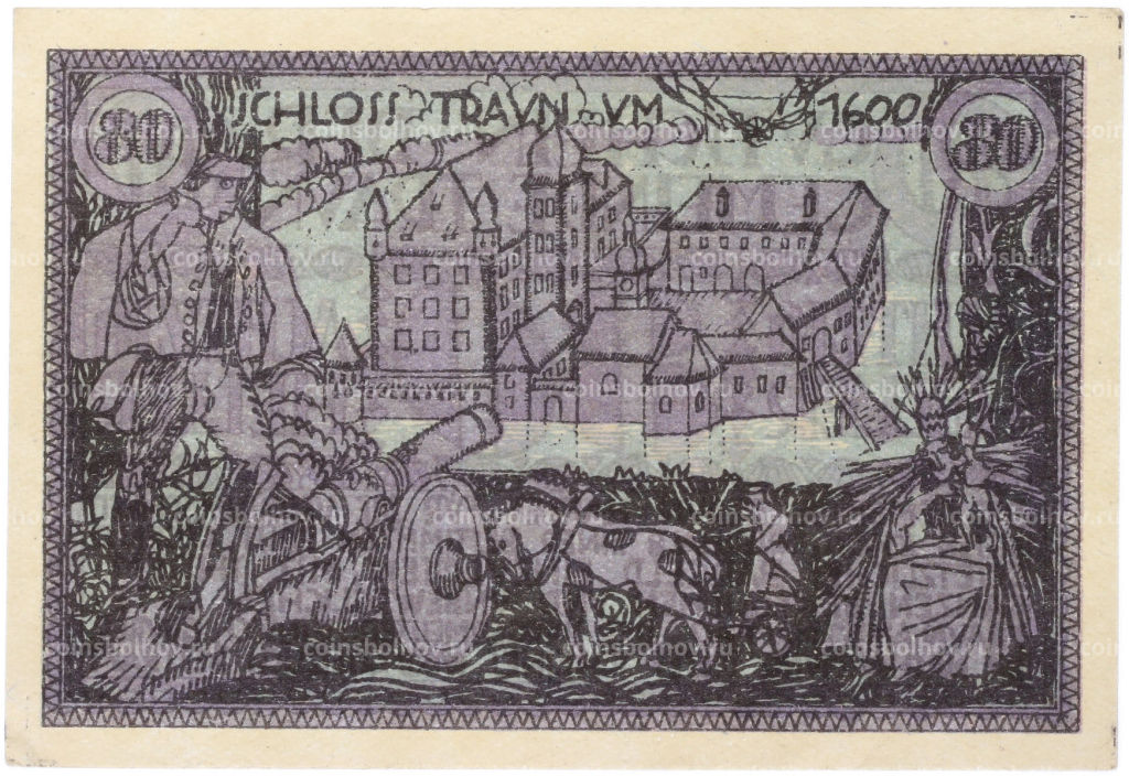 • Банкнота 80 геллеров 1920 года Австрия  община Траун (Нотгельд)