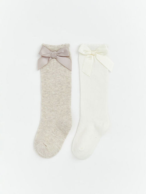 K?z Bebek Fiyonklu Diz Alt? ?orap 2li