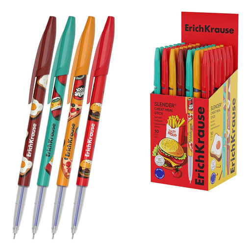 Цена за 2 шт. Ручка шар. ErichKrause "Slender Stick Cheat Meal" (65368) синяя, 0.7мм, корпус с рисунком в ассорт.