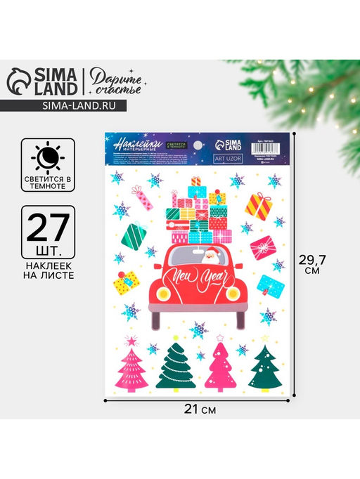 • Цена за 2 шт. Наклейки новогодние, интерьерные со светящимся слоем «Новогодняя доставка», 21×29.5 см