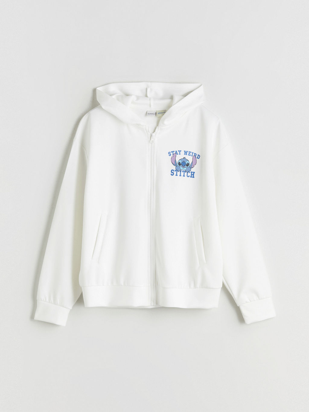Kap??onlu Stitch Bask?l? K?z ?ocuk Fermuarl? Sweatshirt
