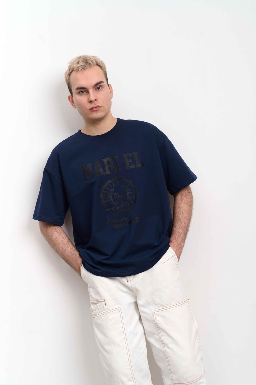 Стильная и универсальная футболка в насыщенном синем цвете. Модель выполнена в свободном крое, что обеспечивает комфорт и свободу движений в повседневной носке. На груди расположен крупный контрастный принт MARI EL, дополненный эмблемой с датой 1920 и надписью Russian Federation. В нижней части аккуратный стильный элемент в виде рукописного логотипа Йошкар-Ола.