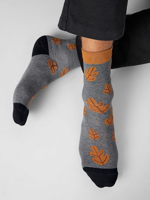рис.3346 Мужской носок классический, с рисунком в виде листьев.­