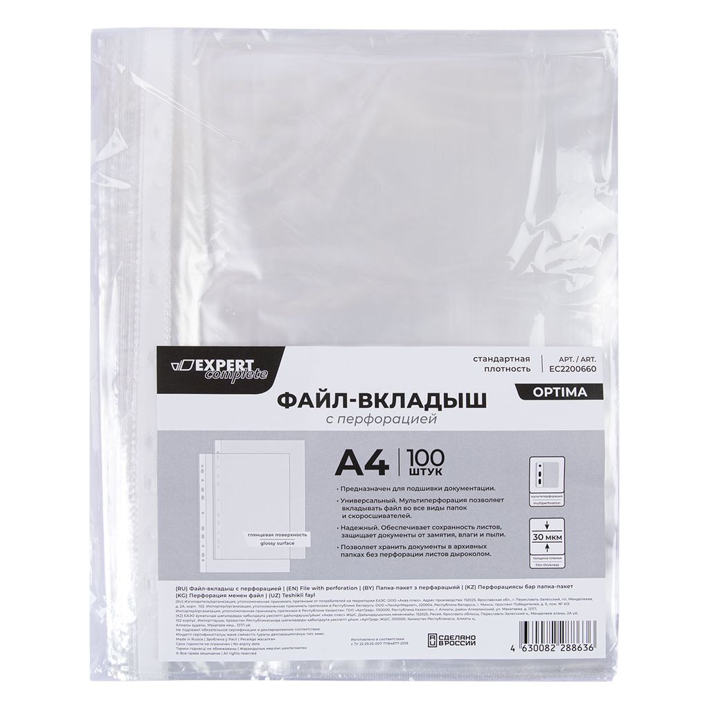 Expert Complete Файл-вкладыш OPTIMA A4 100 шт. 30 мкм глянцевый прозрачный EC2200660