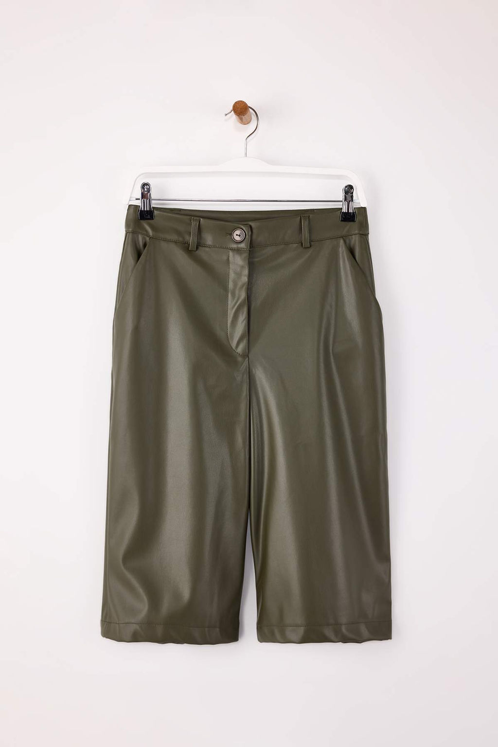 • Koyu Haki Suni Deri Uzun Sort & Bermuda TWOSS26SR00007