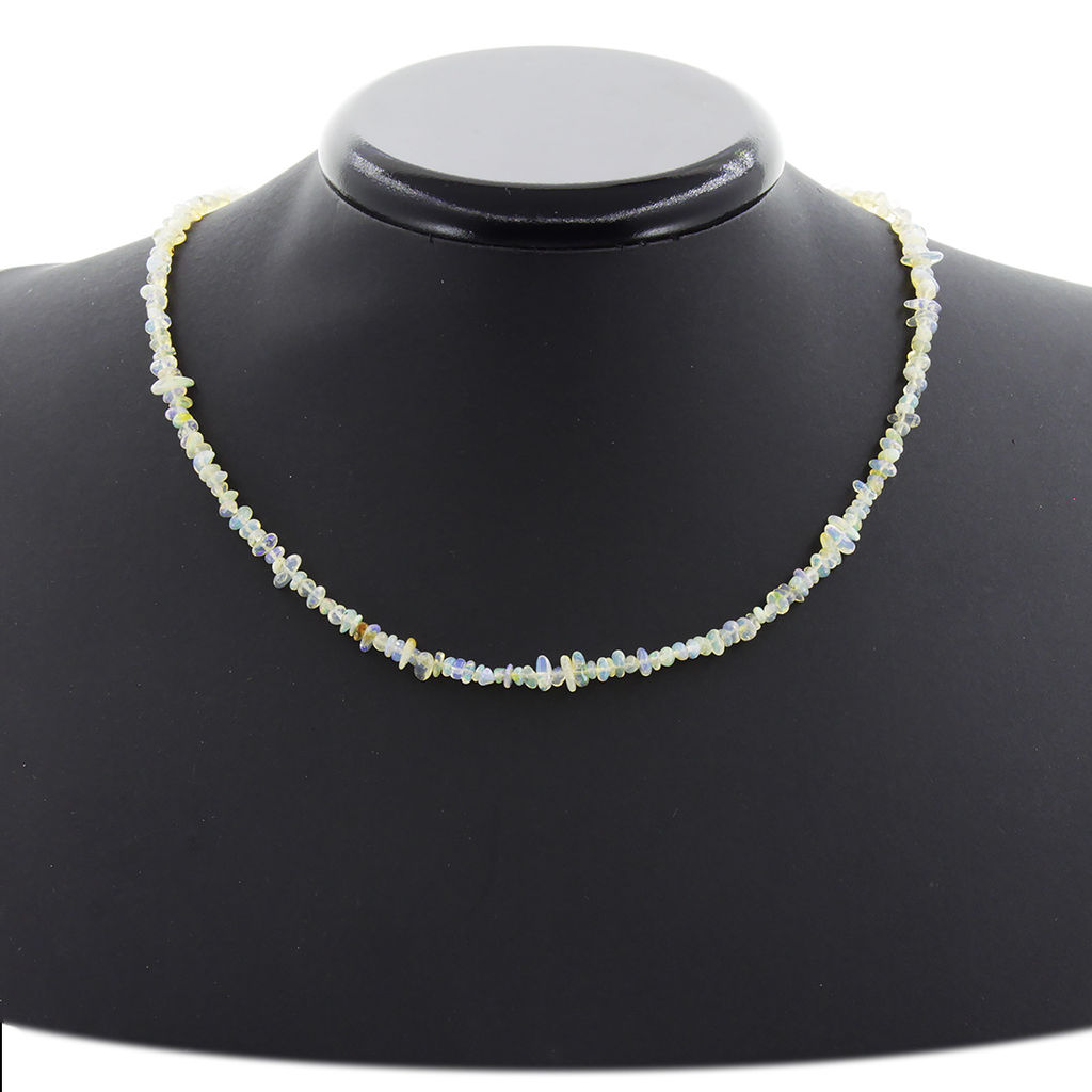 Великолепные бусы из натурального белого опала подойдут к Вашему повседневному или праздничному образу. Размер гальки 4мм. Длина бус 43,,,48см, регулируется за счет цепочки.