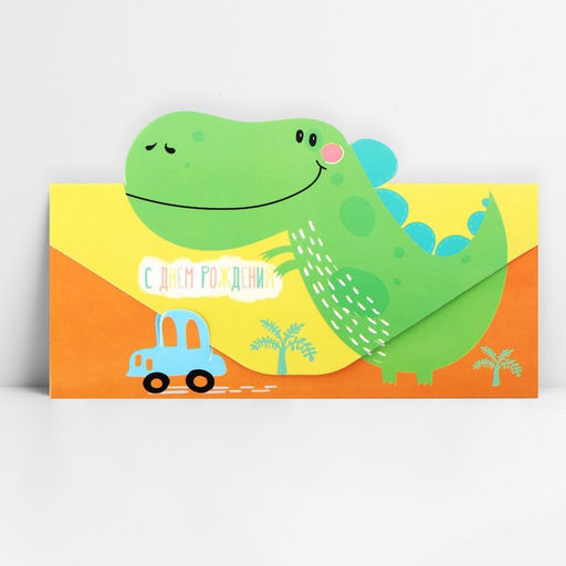 • Цена за 5 шт. Конверт для денег фигурный «С днём Рождения», динозавр, 17.5 х 8 см