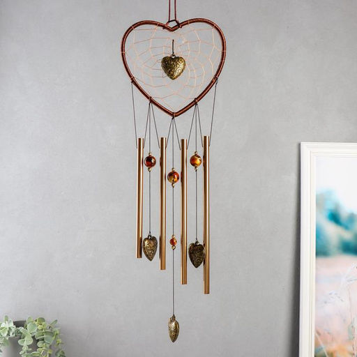 • Музыка ветра с ловцом снов «Сердце в сердце», 4 трубки, 52 см