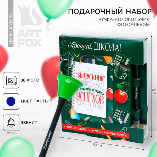 • Подарочный набор, фотоальбом на 36 фото, ручка-колокольчик «Выпускной:Прощай, школа!»