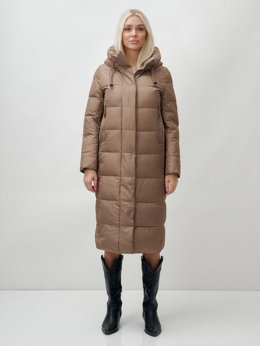 Название модели: Пальто утепленное стеганное зимнее с капюшоном женское коричневого цвета 9606K