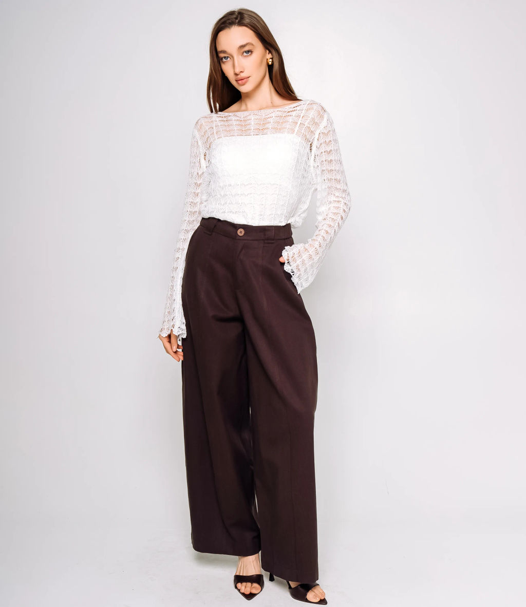 Брюки это важная часть гардероба, которая подчеркивает утонченность и профессионализм каждой женщины. Широкие брюки с завышенной талией, прямым свободным кроем до щиколотки и выраженной срединной стрелкой по каждой штанине; пояс с петлями для ремня, застёжка на скрытую молнию и пуговицу на поясе, врезные боковые карманы, мягкие складки у пояса для дополнительного объёма. Для пошива использована ткань: 49% тенсель, 31% вискоза и 20% полиэстер. Материал средней плотности хорошо держит форму, обладает приятной на ощупь структурой и обеспечивает комфорт при носке. Даже после многократных стирок изделие не утратит первоначальной аккуратности и цвета, что важно для поддержания высокого уровня продаж в рознице. Обратите внимание на насыщенные оттенки: цвет соответствует фотографии на сайте. Модель имеет два боковых кармана и декоративные швы, подчеркивающие структуру изделия. Для уверенности в размере на странице представлена таблица, с помощью которой можно самостоятельно снять мерки и подобрать нужный размер. Мы предлагаем выгодные оптовые условия, гибкую ценовую политику и стабильные поставки для ваших магазинов. Цена установлена адекватная, что позволит вам формировать привлекательную наценку и обеспечивать высокую оборотность. Подарите своим клиенткам изделие, которое сочетает в себе стиль, комфорт и надежное качество. -- Характеристики -- Цвет: коричневый Пол: Женский Страна производитель: Китай Сезон: Демисезон Материал: Вискоза, Полиэстер, Тенсель