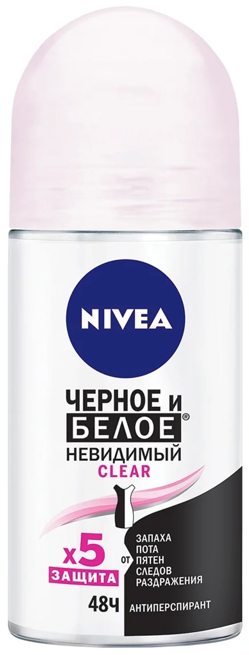 • NIVEA део-ролл Жен 50мл Черное и Белое Невидимый Clear