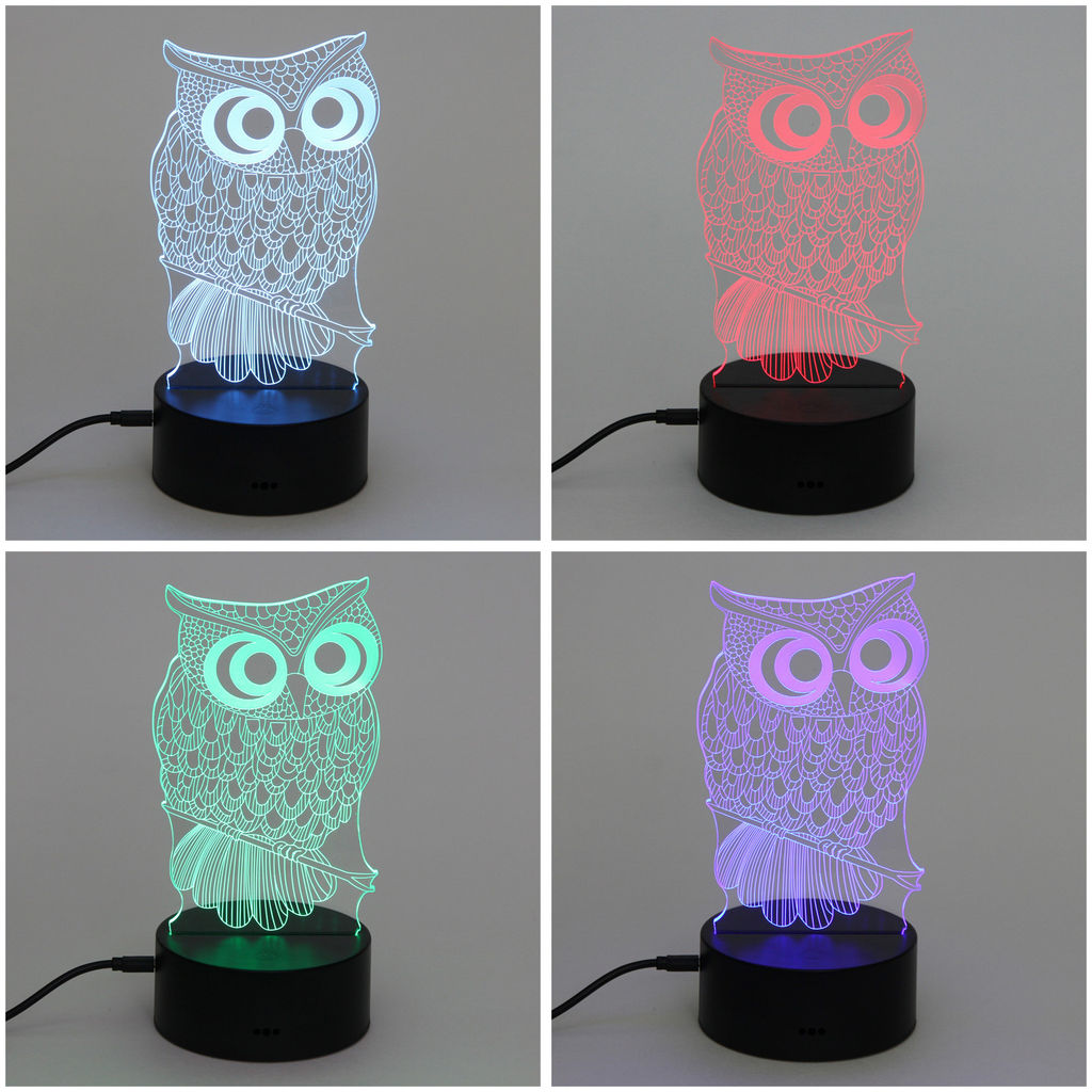 Светильник ночник "3D-Мудрая сова" на пластиковой подставке, с включателем USB­