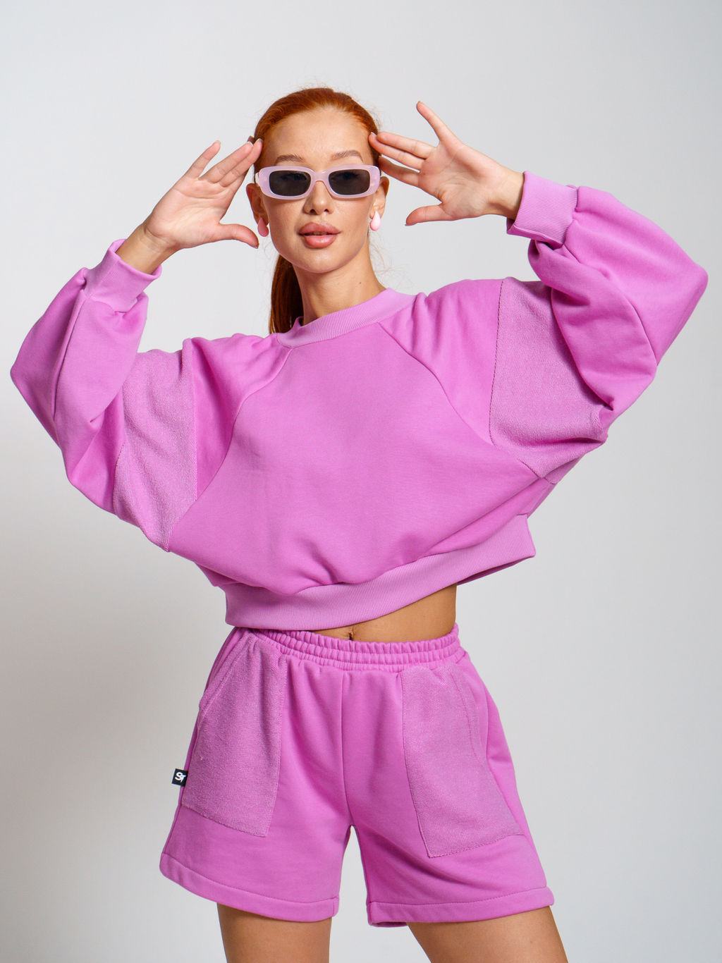 Женский спортивный комплект универсален и практичен его можно носить как полноценный ансамбль или сочетать свитшот и шорты с другими элементами гардероба. Это отличный вариант для дома, прогулок, встреч с подругами, легких тренировок или занятий фитнесом. Дизайн продуман так, чтобы быть удобным и стильным для всех: от миниатюрных до плюс-сайз, а также для будущих мам
